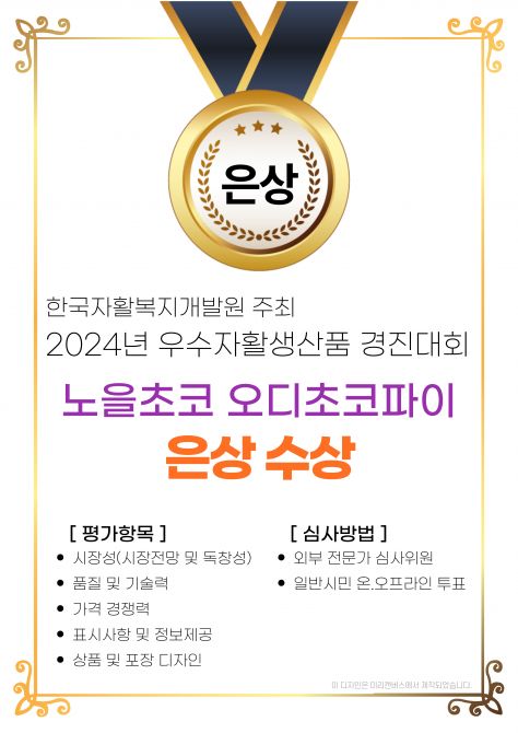 Çѱ¹ÀÚȰº¹Áö°³¹ß¿ø¿¡¼ ÁÖÃÖÇÑ ¡¸2024³â Àü±¹ ¿ì¼öÀÚȰ»ý»êǰ °æÁø´ëȸ¡¹¿¡¼ Àº»óÀ» ¼ö»óÇÏ¿´½À´Ï´Ù.